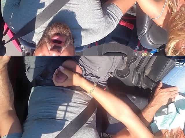 Stepsiblings get naughty in a car with handjob action