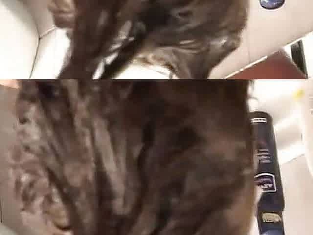 Jen is peeing on her bath slippers