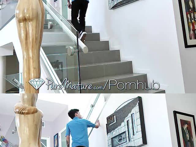 Mature blonde teacher gets fucked by her student fan.