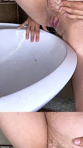 I'm watching a pregnant stepmom wash her big milky tits in the bathroom