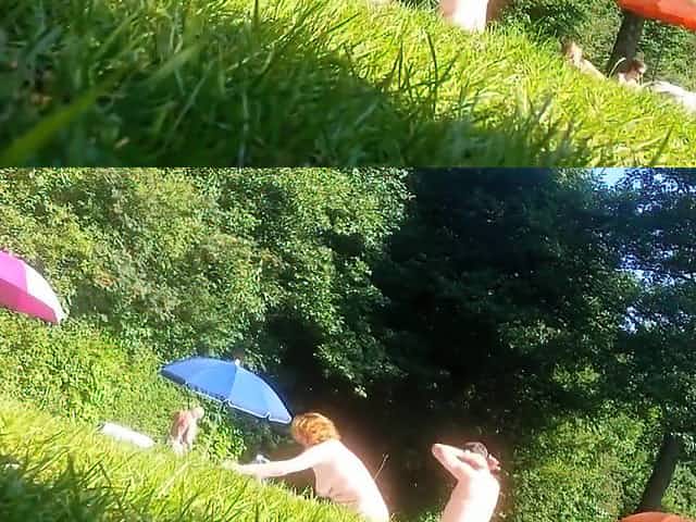 Mature beachgoers get caught on camera showering