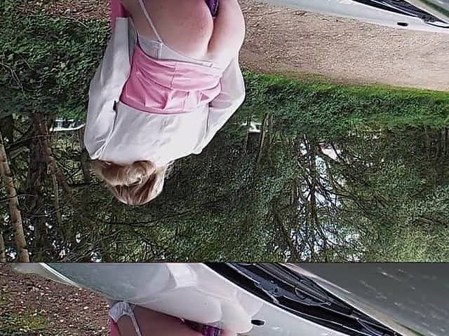 Crossdresser Riding Sex Tool on Car Bonnet