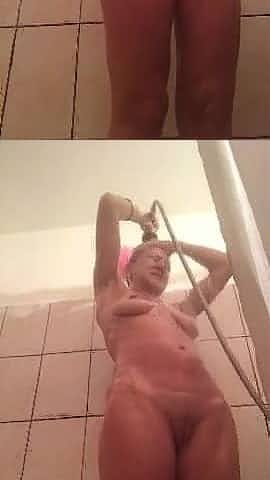 Short hair mature taking a shower