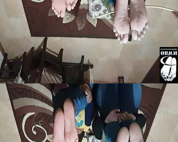 Mature slut makes her slave girl lick her dirty feet and pussy