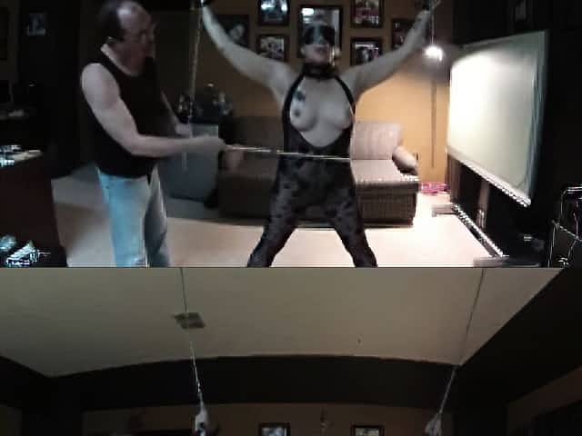 Mature slave whipped while bound and hooked