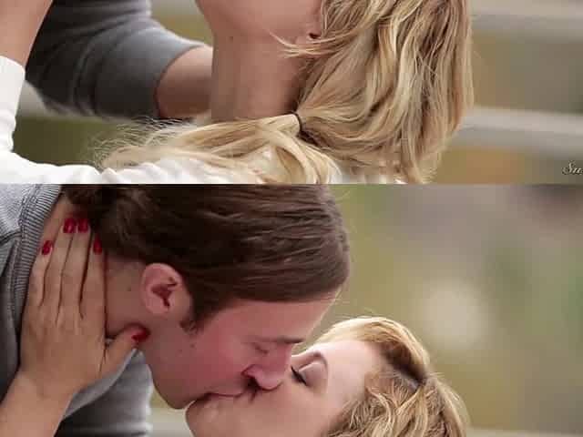 Amateur lesbian love making between a blonde teen and a mature slut