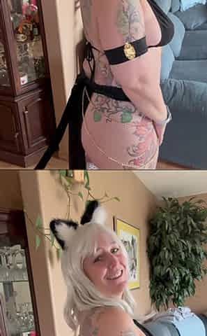 The housekeeper put on a pink wig and climbed into the bathroom to fondle her clitoris