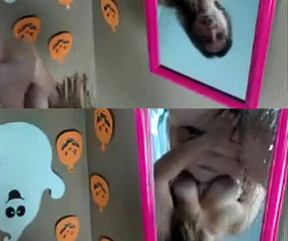 Teen squirts on mirror