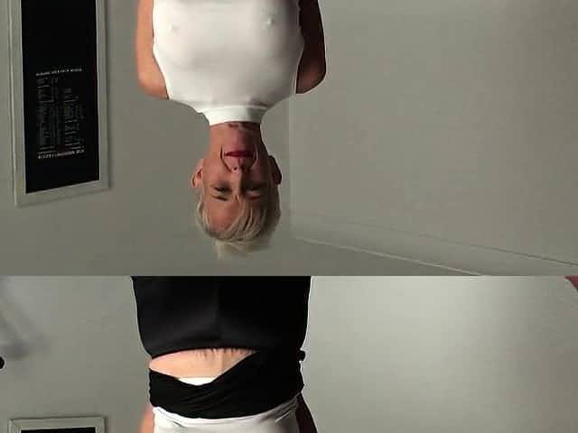 Hot mature brunette slut is tied and she hangs on this