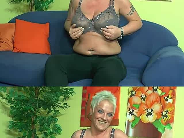 Fat woman Margreet spreads her legs for a man's fist