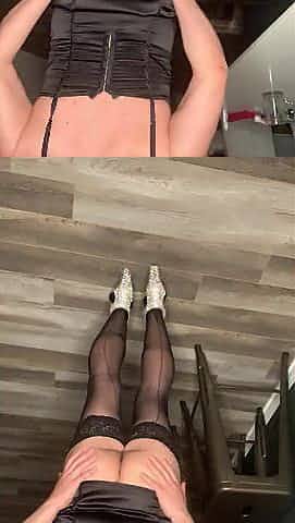 Sissy Floozy in underware top and shiny high heel sandals