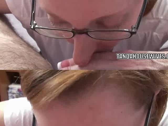 Nerdy mom pink shirt blow load cum in mouth swallows
