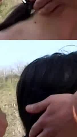 Sexy brunette loves hard threesome outdoor fuck
