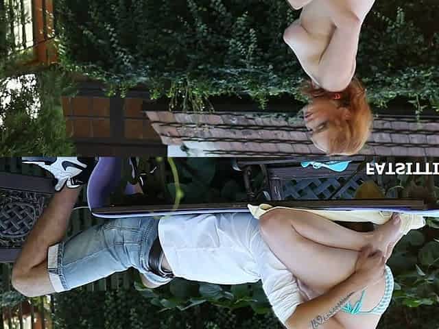 Outdoor sex in the back yard with chubby mature wife Amy White