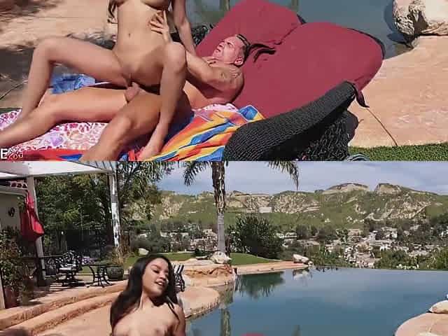 Smooth outdoor fucking on a chair with brunette darling Maya Bijou
