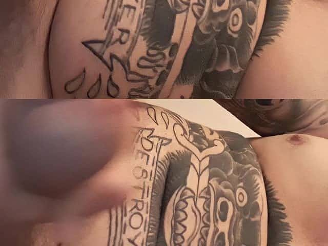 Sexy muscular guy with tattoos jerks off till he cums