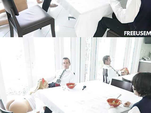 Sexy Blonde Girl Waits For Suited Man To Come Home
