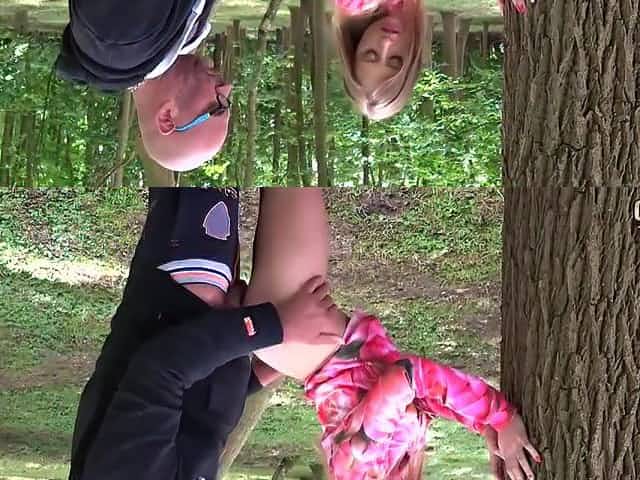 A peeping old man fucks a big breasted beauty outdoors