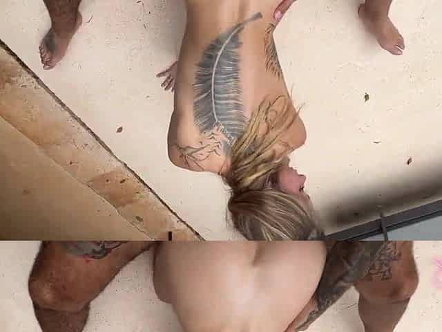 Sexy Mexican babe Drii Cordeiro enjoys a wild ride on a big tattooed cock on the couch