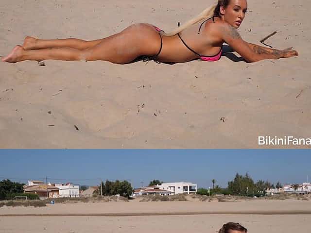 Big titty micro bikini babe on the beach
