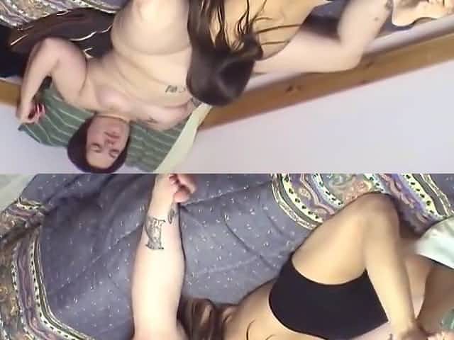 Chunky Tattooed Chick Sits Her Pussy Onto Midget Girls Face In Her Bedroom