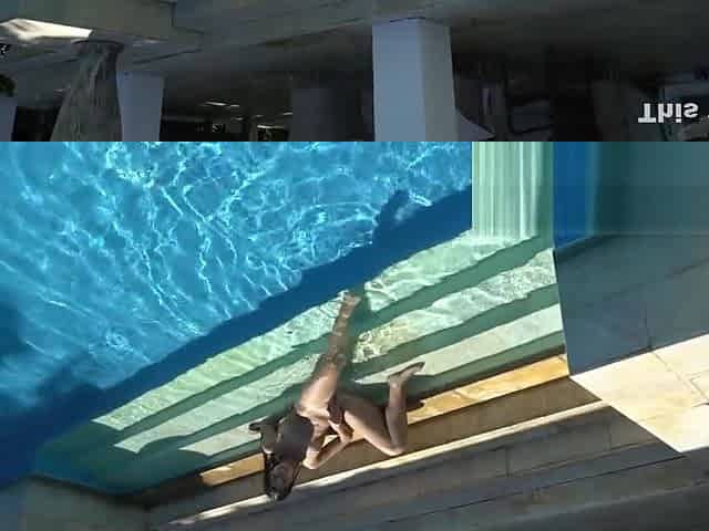 Big dildo in the ass of a beautiful Mila Fox in the pool