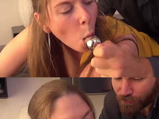 Redhead DP slut fucked in threesome by big white cocks