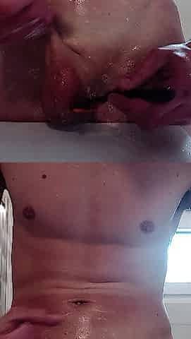 2 toys in me _ ebony in butt and white in throat three min EN