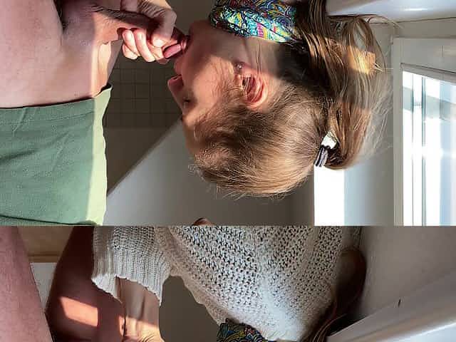 Amateur milf doing a blowjob ending in a facial