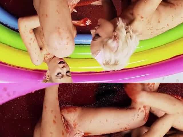 Barbie Looking Blonde Lesbians With Big Fake Tits Rubbing Each Other In A Pool Full Of Jelly