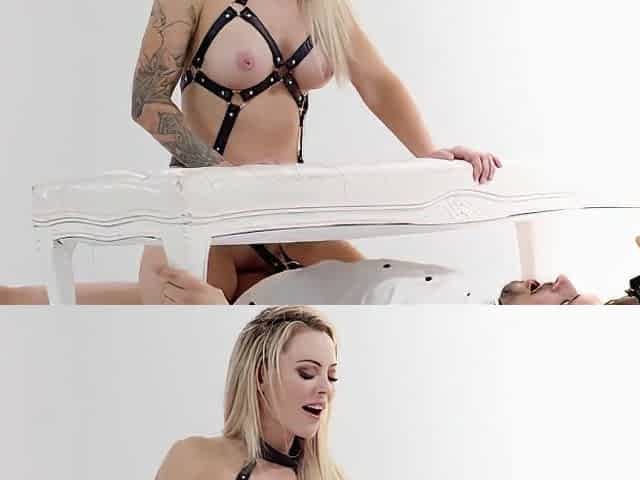 Submissive blonde gets roughly fucked in a pretty kinky lesbo tryout