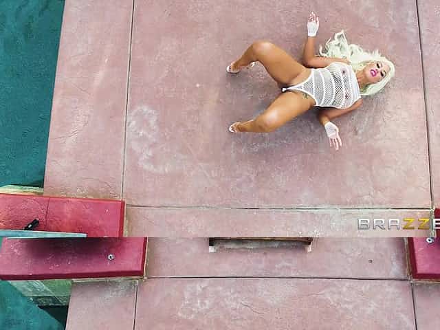 Chanel Preston in fishnet body stockings gets asshole drilled
