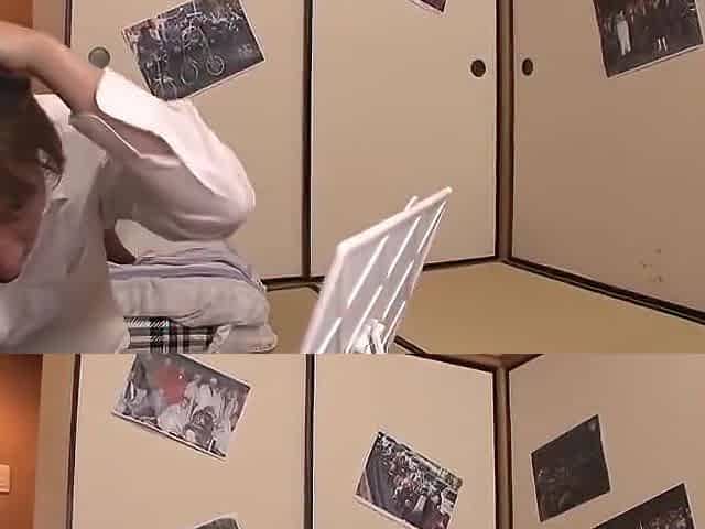 Mom fresh out of the bath fucks a cute college girl