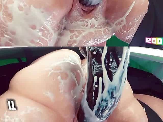 Monstrus arse penetreted by two long dildos