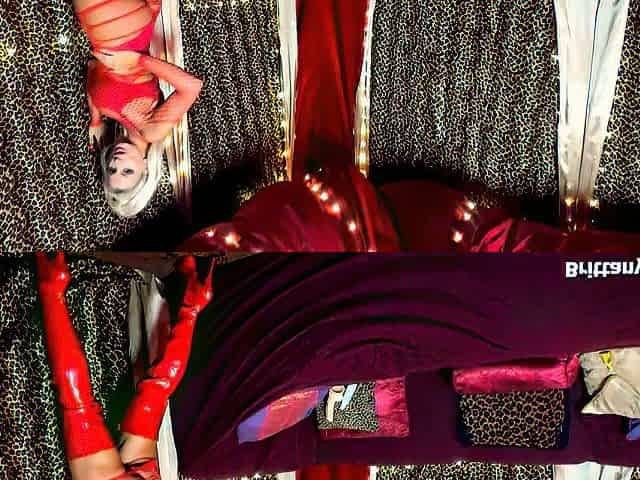 Octavia Red in lingerie, showcasing her acrobatic skills