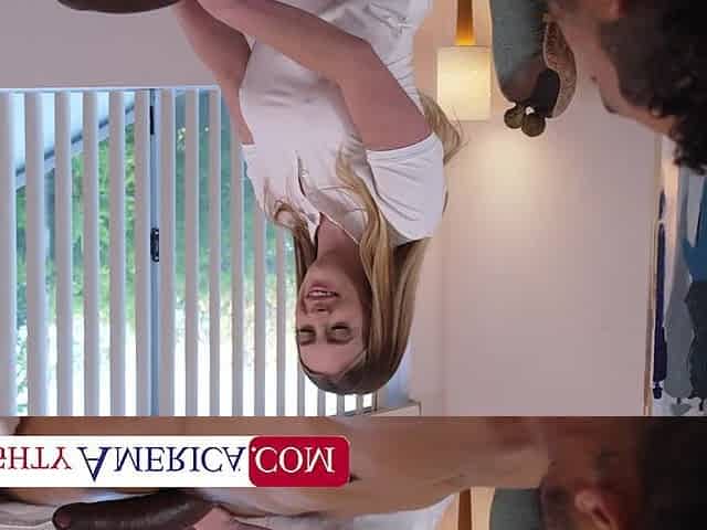 Busty blonde masseuse Lindsay Lee gives happy ending to big black cock