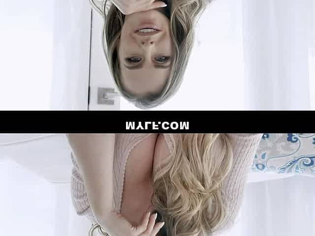 Blonde Emily Addison takes off her tight jeans skirt