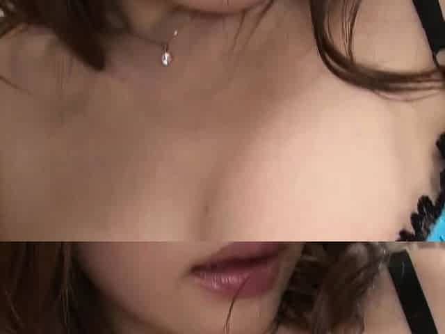 Japanese babe with biggest boobs bounces on a strapon