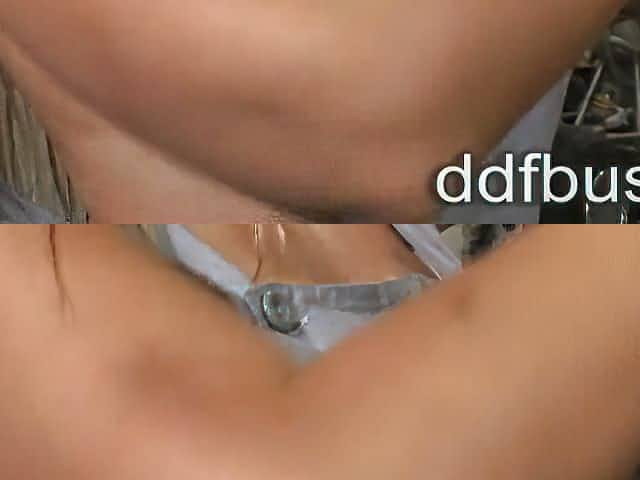 Busty blonde Milf hottie blows him and gets nailed on a bench, gets cum on her titties