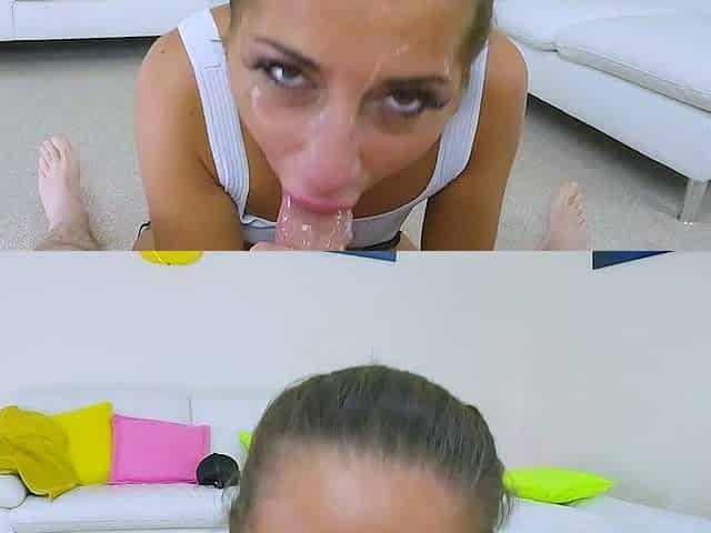 Interracial POV blowjob by exciting brunette girl