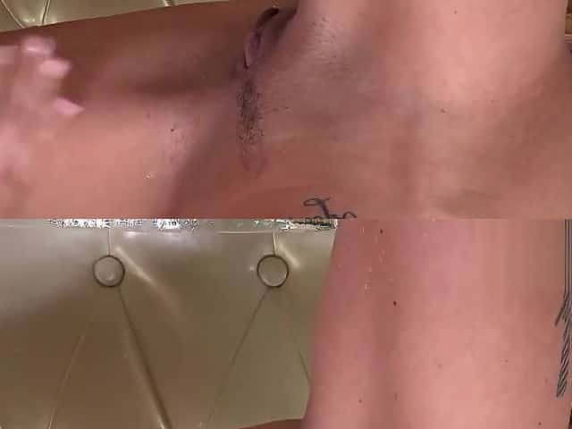 Sweet lesbian teens get splashed with pee and squirt wet snatches