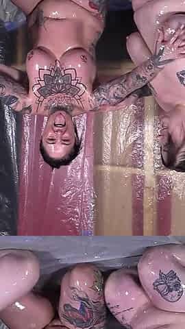 Oiled up with Hannah and Skyler