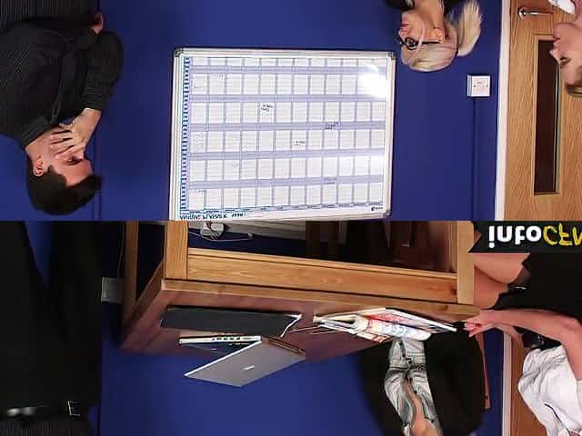 CFNM office babes blackmail and suck off sub