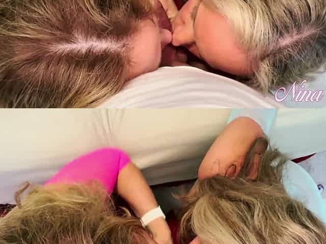 Mom and a Young Brunette Making Out
