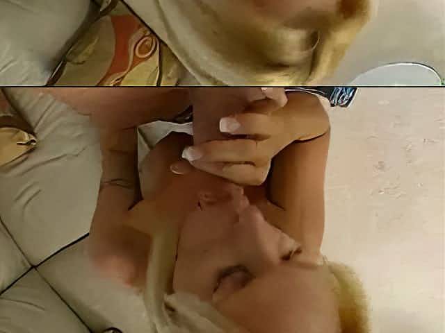 Blonde hottie teases man with giant boobs when riding cock