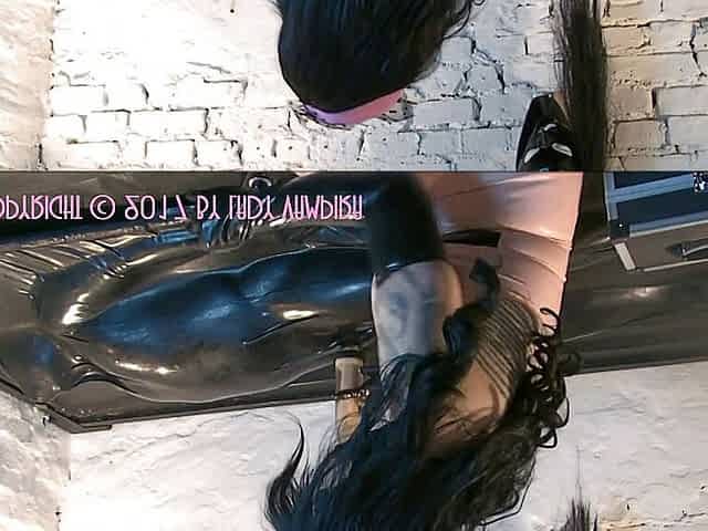 A pretty latex babe makes you come – In the rubber vacuum bed with the milking machine