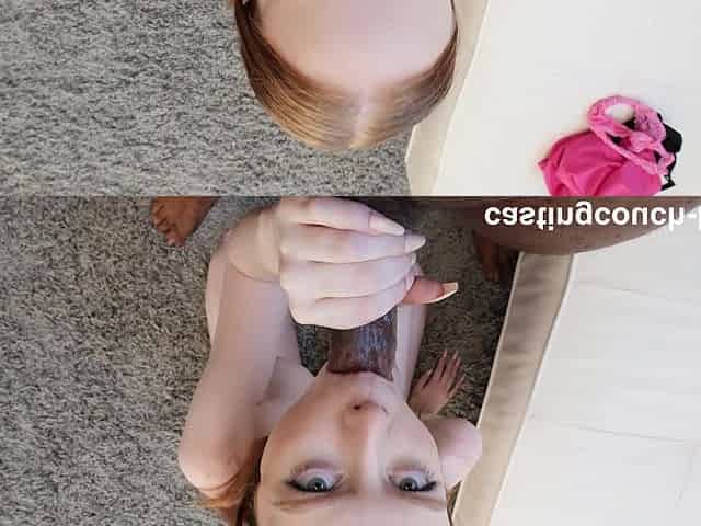 Redhead Marina Gold enjoys while sucking a hard cock in POV