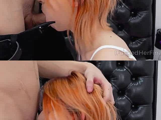 Samantha Reigns gives a deepthroat blowjob and gets a cumshot