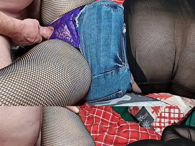Voluptuous PAWG in fishnet stockings teases in mini skirt and g-string