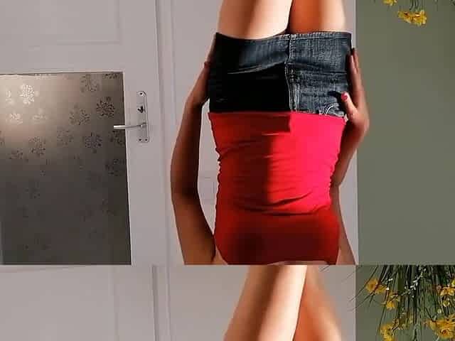 Teasing And Touching Myself In Denim Mini Skirt